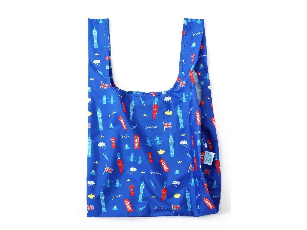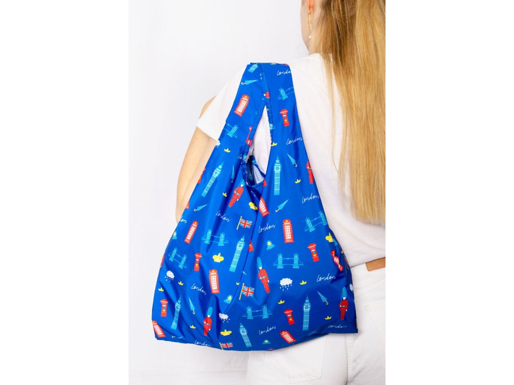 Túto stredne veľkú modrú tašku s motívom Londýna môžete mať po ruke vo vrecku bundy alebo v kabelke, aby vám kedykoľvek pomohla odniesť všetko, čo práve potrebujete. Aj neplánovaný nákup. Pomáha chrániť našu planétu a jej nosením eliminujete potrebu nákupu jednorazových tašiek.