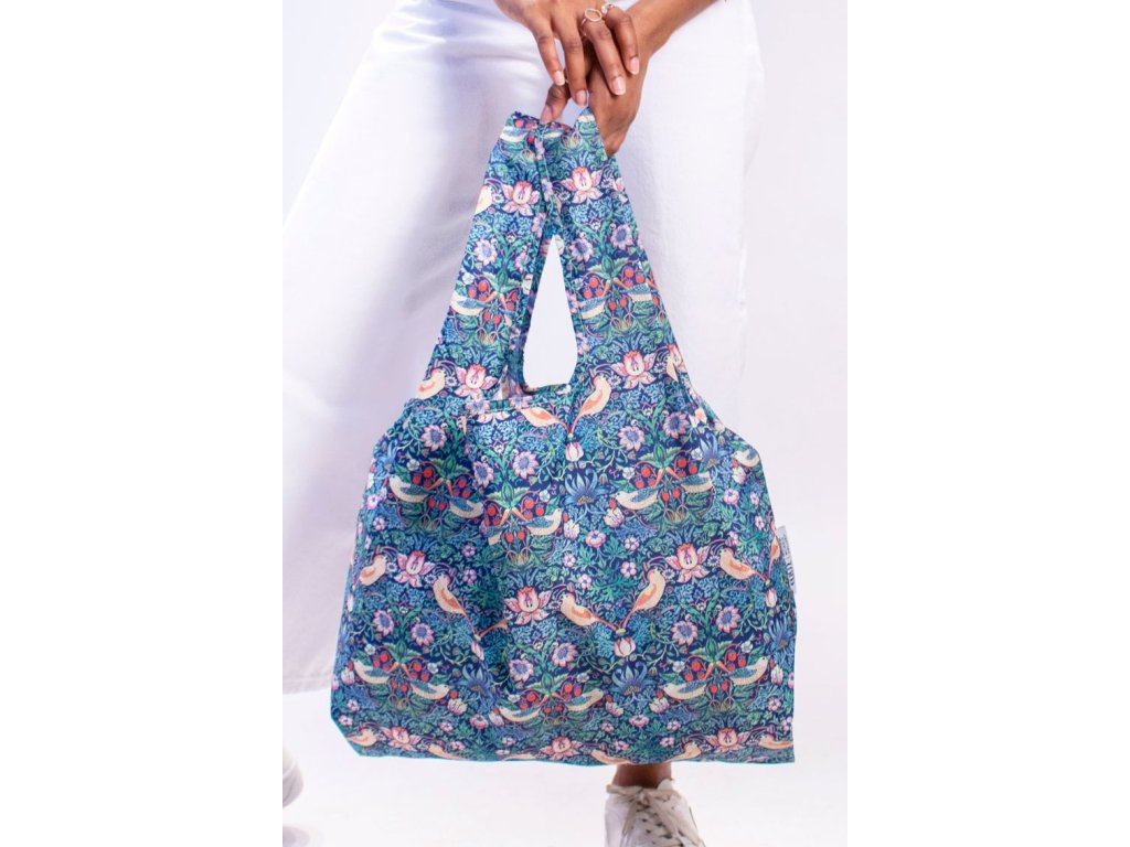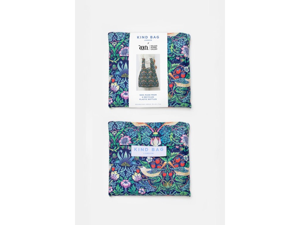 Štýlová a všestranná ekologická nákupná taška Kind Bag Strawberry Thief Medium vyrobená zo 6 recyklovaných plastových fliaš. Nákupné tašky z kolekcie William Morris sú inšpirované motívmi tohto známeho textilného dizajnéra.