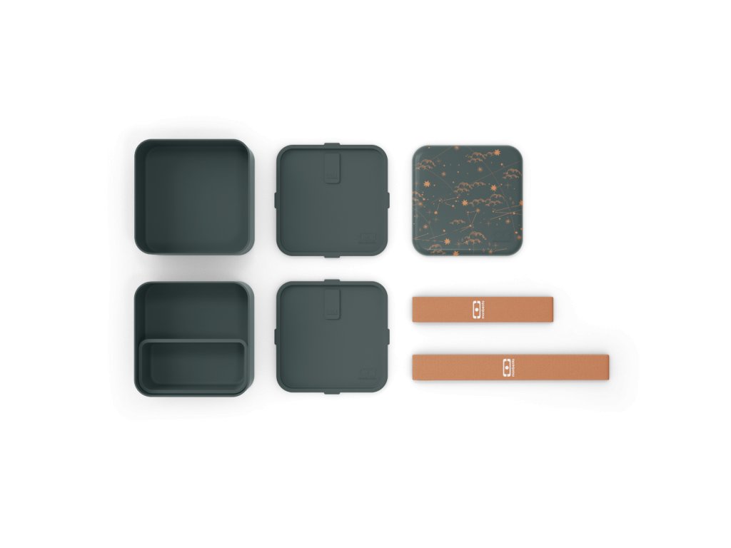 Box má 2 vzduchotesné nádobky na jedlo s antibakteriálnym tesnením, ktoré sú spojené praktickou elastickou gumou.