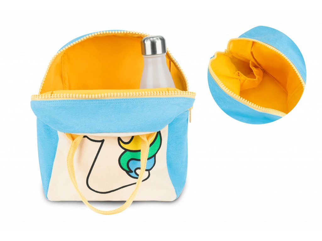 Bez olova, ftalátov a BPA. Vonkajšia časť taštičky je tvorená z certifikovanej eko bavlny, ktorá je zdobená rôznymi motívmi. Vnútro je z polyesteru, teda je vodeodolné a zároveň udrží vaše jedlo dlho čerstvé. Vnútorný poťah je ľahko umývateľný a tašku je možné prať aj v práčke.
