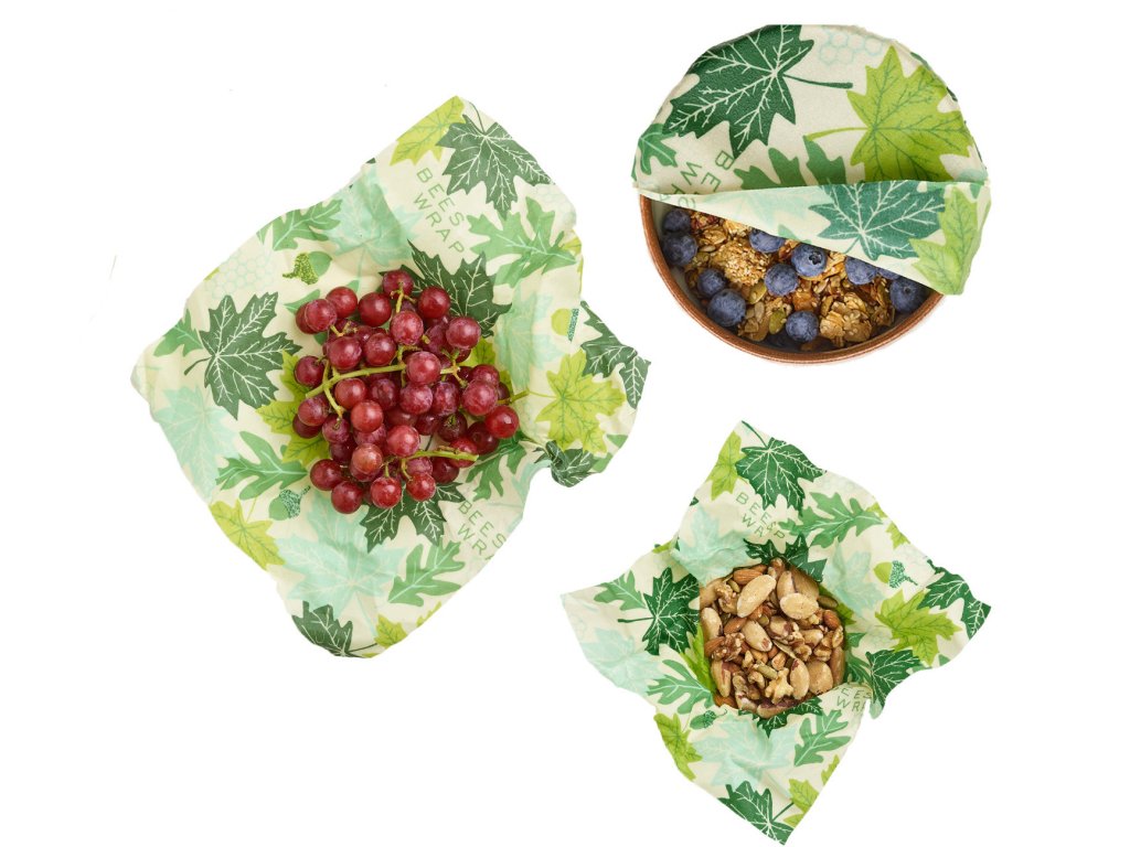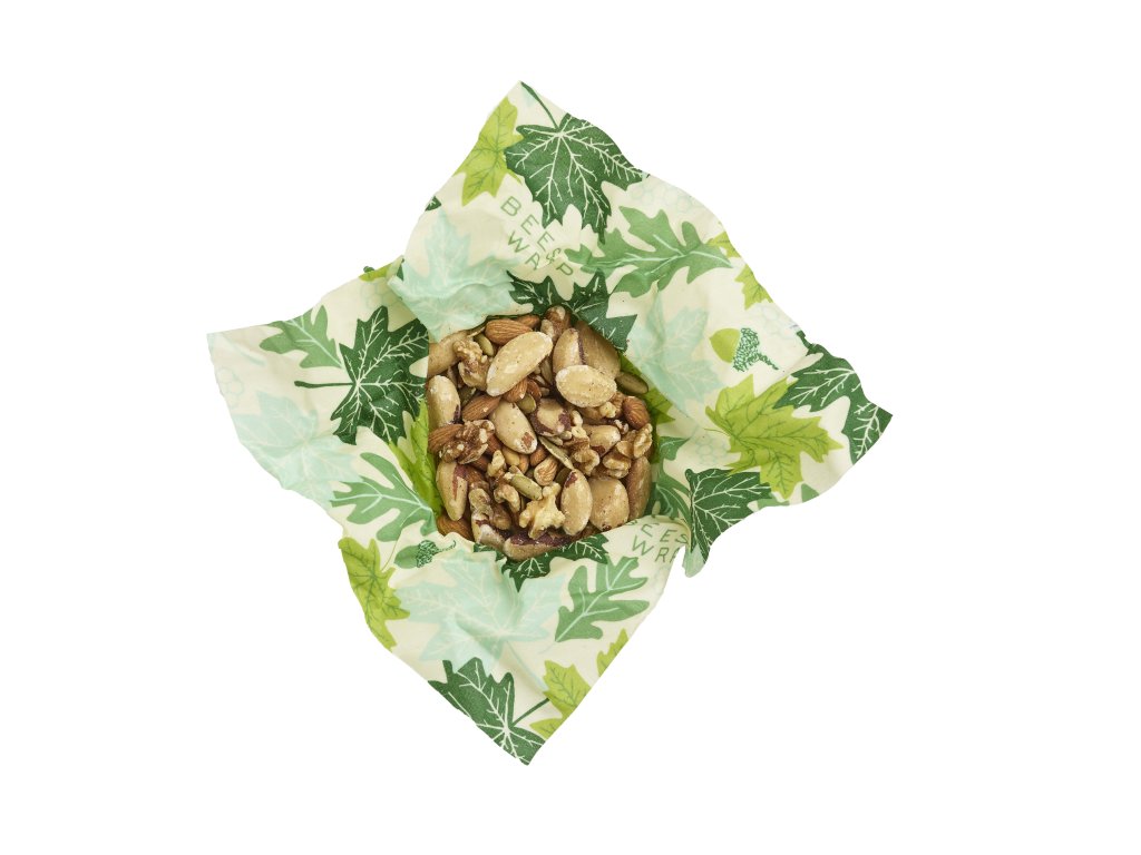 Bee's Wrap je vyrobený z organickej bavlny napustenej včelím voskom z USA, organickým jojobovým olejom a živicou zo stromov. Táto kombinácia vytvára tvárny a znovu použiteľný obal na potraviny.