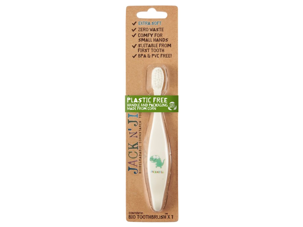 ZLOŽENIE: Rúčka kefky je vyrobená z kukuričného škrobu (NON GMO). Mäkké štetinky s rovno zastrihnutými a zaoblenými nylónovými vláknami pre dôkladné čistenie zúbkov a ďasien. Odporúčame kefku meniť aspoň každých 6-8 týždňov, podľa opotrebenia štetiniek, a tiež vždy po chorobe. Vyrobená bez obsahu BPA a bez PVC. Kompostovateľná - biologicky rozložiteľná už za 90 dní.