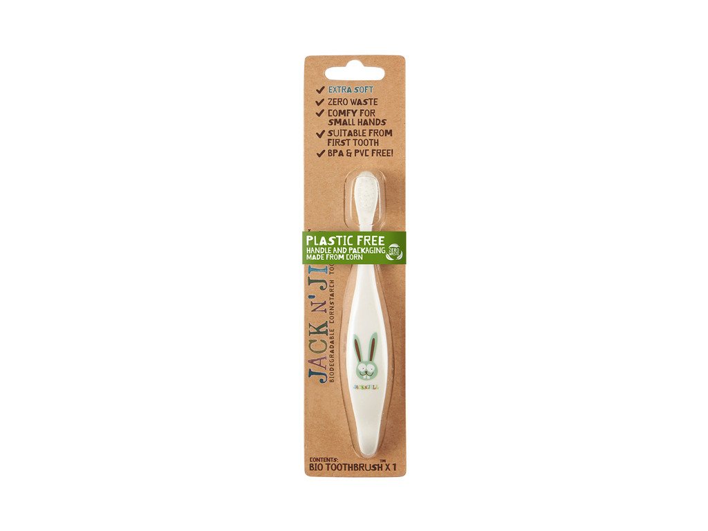 ZLOŽENIE: Rúčka kefky je vyrobená z kukuričného škrobu (NON GMO). Mäkké štetinky s rovno zastrihnutými a zaoblenými nylónovými vláknami pre dôkladné čistenie zúbkov a ďasien. Odporúčame kefku meniť aspoň každých 6-8 týždňov, podľa opotrebenia štetiniek, a tiež vždy po chorobe. Vyrobená bez obsahu BPA a bez PVC. Kompostovateľná - biologicky rozložiteľná už za 90 dní.